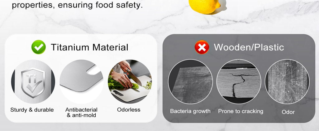 🔪 Effortless chopping with medical-grade titanium strength 🧼 Spotless cleanup on smooth, pore-free surface 🥒 Dual-sided prep for fruits, veggies, meats 💪 Ultra-durable design for confident cooking adventures